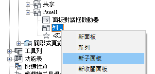 - 在列上按一下滑鼠右鍵,然後選擇「新子面板」或「新收闔面板」。