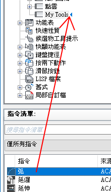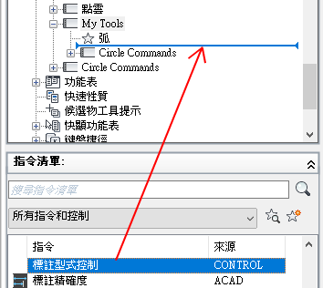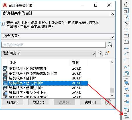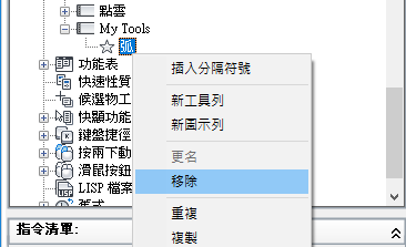 「指令清單」窗格僅會顯示工具列控制元素的清單。