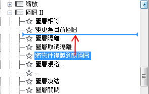 拖曳指令或控制項時,可使用視覺指示器指定指令或控制項的新位置。