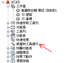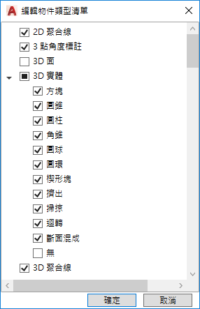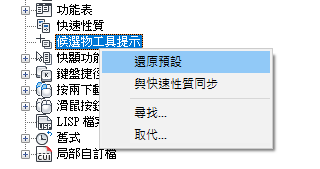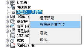 如果勾選了某個性質,則在圖面視窗中將游標置於所選物件類型的一個物件上時,會在候選物工具提示上顯示該性質。清除性質旁邊的勾選標記可以移除所選物件類型的性質。