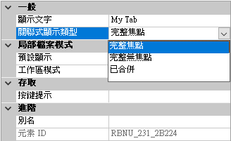 設定功能區頁籤的關聯式顯示類型