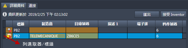 如果您的標籤、安裝和位置屬性存在差異,請使用對等的 Inventor 值手動更新 Electrical 元件的值,因為這些屬性不屬於「接受 Inventor」作業。