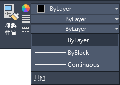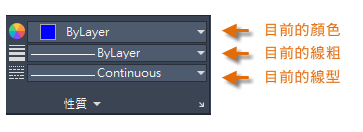 您可以將顏色和線型等性質指定至個別物件,或將其做為指定給圖層的預設性質。