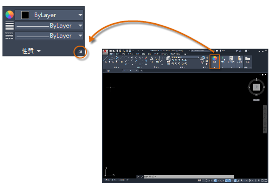 「性質」選項板是重要的工具。您可以使用「性質」指令 (在指令視窗上輸入 PR) 開啟選項板,隨您喜好按 Ctrl + 1 或者按一下「常用」頁籤中「性質」面板上的小箭頭。