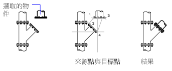 在 3D 中,使用 3DALIGN 指令,指定最多三個點來定義來源平面,然後指定最多三個點來定義目標平面。