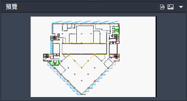 「外部參考」選項板下面的資料窗格可設為顯示所選檔案參考的檔案參考性質或預覽影像。