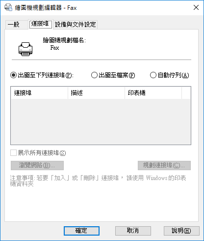 展示電腦上全部可用的連接埠,不論繪圖機上可用的連接埠為何。