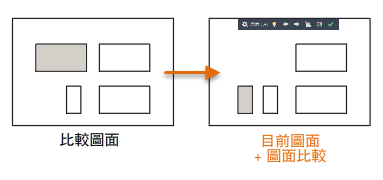 - 比較處於作用中狀態時,會自動偵測對目前圖面所做的變更。