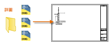 在以下範例中,圖檔將插入至目前圖面中以提供標準詳圖。