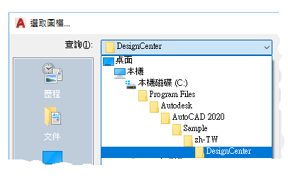 - 導覽至儲存各種範例圖面的「設計中心」資料夾。