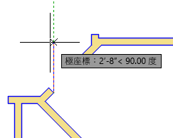 游標會鎖點至極座標追蹤設定中所定義的角度和增量。