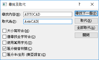 只尋找與「尋找內容」中指定的大小寫字元相符的文字。