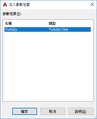 顯示已加入至圖塊定義的參數的可用自訂性質。