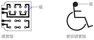 環是經過填滿的環,或進行了單色填滿的圓,實際上是具有寬度的封閉聚合線。