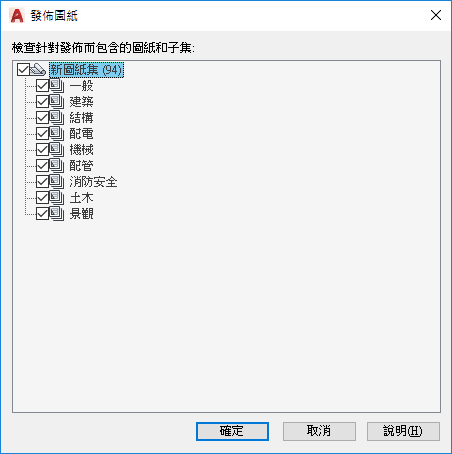 指定要包括以進行發佈的圖紙。