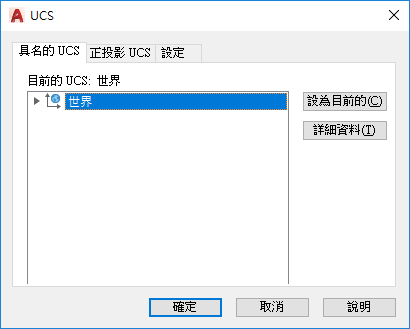 顯示提供有 UCS 座標資料的「UCS 詳細資料」對話方塊。