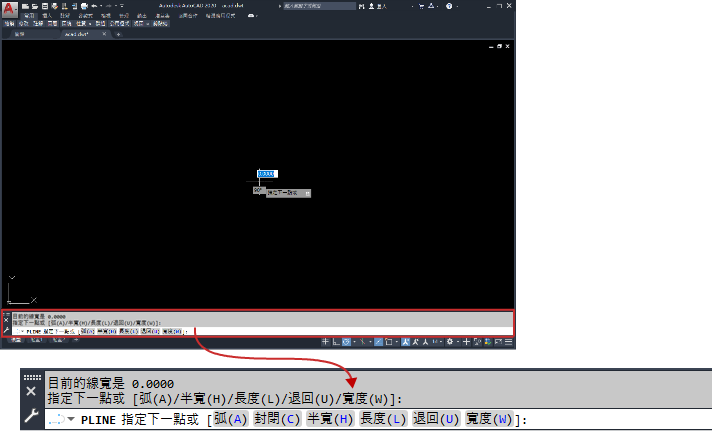 按 Ctrl+9 或從功能區 () 隱藏和重新顯示指令視窗。如果您隱藏指令視窗,您仍然可以在「動態」輸入工具提示中輸入指令。但是,某些指令與系統變數會將值傳回指令視窗,因此在這些情況下,您可能需要重新顯示指令行。