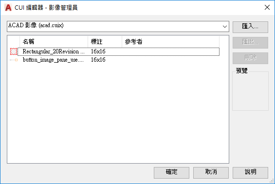 在「按鈕影像」窗格的影像清單上按一下右鍵,然後按一下「匯入影像」。