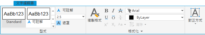 註: MTEXTTOOLBAR 系統變數可控制「文字格式」工具列的顯示。