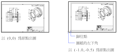 出圖偏移可指定相對於可列印範圍或圖紙邊左下角 (原點) 的出圖範圍偏移。