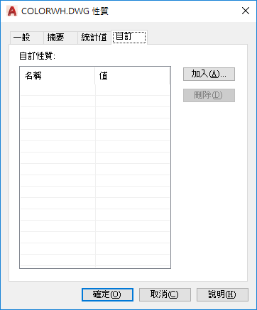 列示目前圖面的自訂性質值與自訂性質名稱。