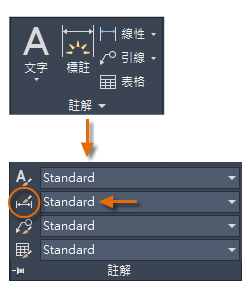 預設標註型式命名為「標準」(英制) 或 ISO-25 (公制)。它會指定給所有標註,除非您將另一種型式設為目前的標註型式。