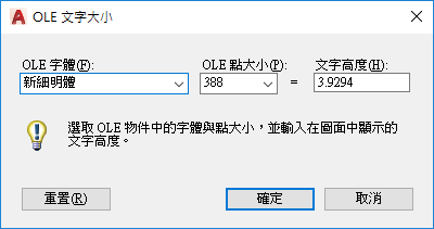 在圖面中插入 OLE 物件時,將該物件還原至其原來大小。