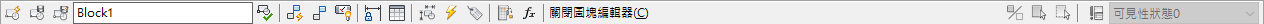 功能區處於非作用中狀態時,會顯示圖塊編輯器工具列。在關閉功能區的情況下進入圖塊編輯器時,也會顯示圖塊編輯器工具列。
