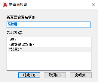 如果您從「圖紙集管理員」開啟「新頁面設置」對話方塊,則僅列示替用頁面設置檔案中的具名頁面設置。