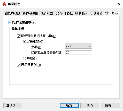 控制是否打開選集循環功能。(SELECTIONCYCLING 系統變數)。