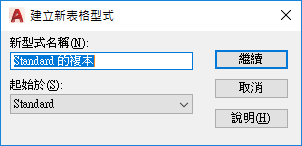 指定新表格型式的名稱,並指定將做為新表格型式基礎的既有表格型式。