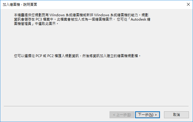 PLOTTERMANAGER (指令) 查找:按兩下「新增繪圖機精靈」捷徑