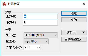 選取文字,然後在「文字編輯器」頁籤的「格式」面板上,按一下「堆疊」。