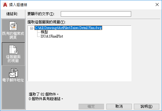 顯示目前圖面內可展開的具名視圖樹狀視圖畫面,您可從其中選取要連結的超連結。