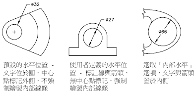 您可以建立多種不同型式的直徑標註,如圖片所示。