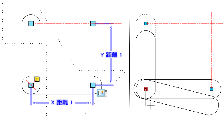 套用至線性或極座標參數的拉伸動作可將所選物件向參數方向移動和拉伸指定的距離。