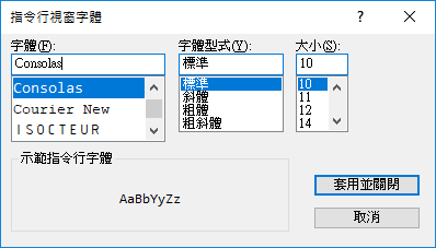 您可以變更指令視窗中所使用的文字字體以符合您的偏好。