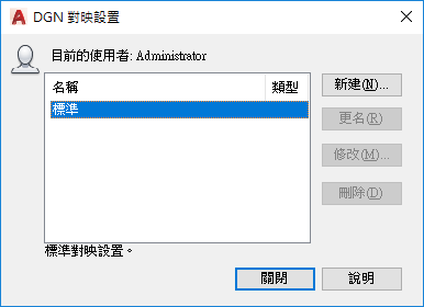 針對 DGN 資料匯入或匯出,建立、更名、修改及刪除對映設置。