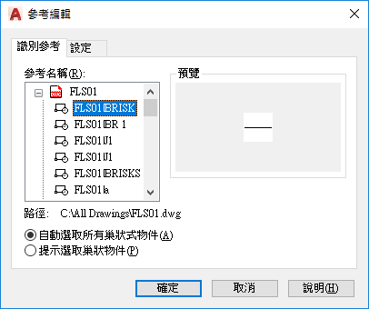 顯示所選參考的檔案位置。如果是一個圖塊,將不會顯示任何路徑。