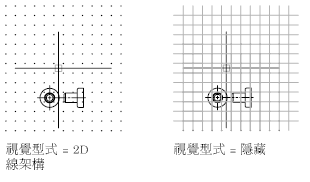 如果拉近或拉遠圖面,格線間距會自動調整,以更適合新倍率。這徵稱為自適應格線顯示。