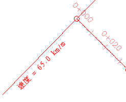 檢查設計速度標示。您將以此標示型式為基礎來建立新標示型式,新標示型式將顯示設計速度而不顯示樁號標示。設計速度標示將被放置在已設置標示的樁號的位置。