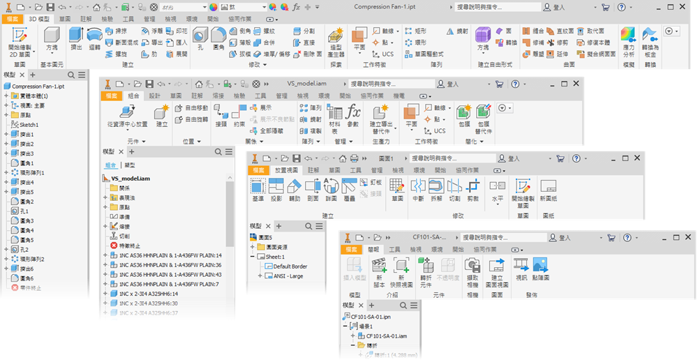 Inventor 使用者介面的各個部分已經過更新,來更新它們的顯示。