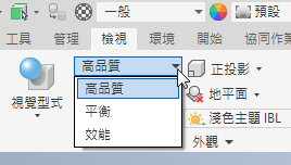 - 高品質 - 將重點放在提供令人滿意的視覺效果上,使用新的 IBL 照明型式淺色主題 IBL、「擬真」視覺型式和陰影。最適合產品演示或最高品質光跡追蹤彩現的高視覺品質。