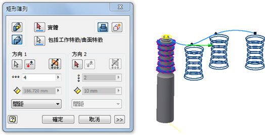 - 現在,您可以使用「矩形陣列」指令來建立非線性實體本體陣列。