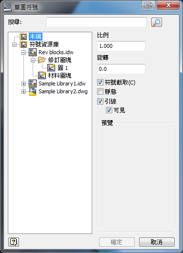 草圖符號資源庫同時支援 IDW 和 DWG 檔案類型