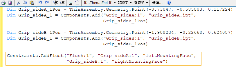 若要取得有關 iLogic 中所支援函數的更多資訊,請參閱〈iLogic API Reference〉。