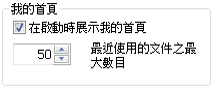 現在,您可以指定在「我的首頁」環境中顯示的最近使用的文件數量。預設數量為 50,最大值為 200。存取此設定的方法:「工具」