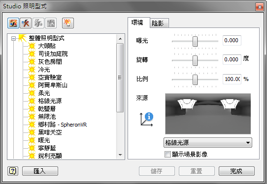 Inventor Studio 中的所有照明型式現在均與 IBL 關聯。IBL 提供了更好的光源。