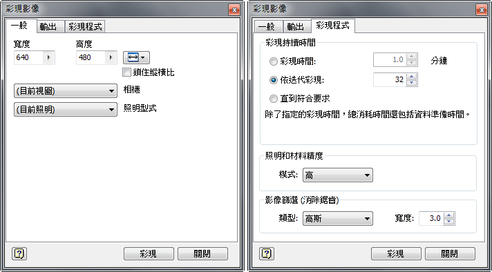 Inventor Studio 現在支援塑型環境中以影像為基礎的照明。若要從塑型照明環境中進行彩現,請使用「檢視」頁籤中的指令,然後使用 Studio「彩現影像」對話方塊中的「目前照明」,或從「彩現影像」對話方塊中變更為其他照明型式。