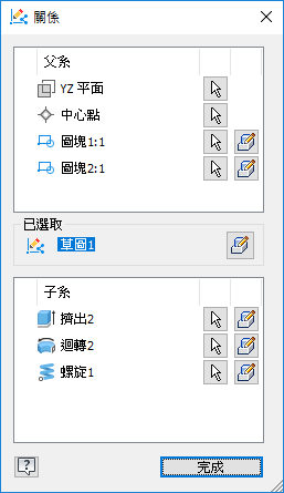 下一個範例展示了在「對齊」掃掠中使用 90 度扭轉的效果,該掃掠用於設計一個將瓶子從水平位置旋轉至垂直位置的進給螺桿。
